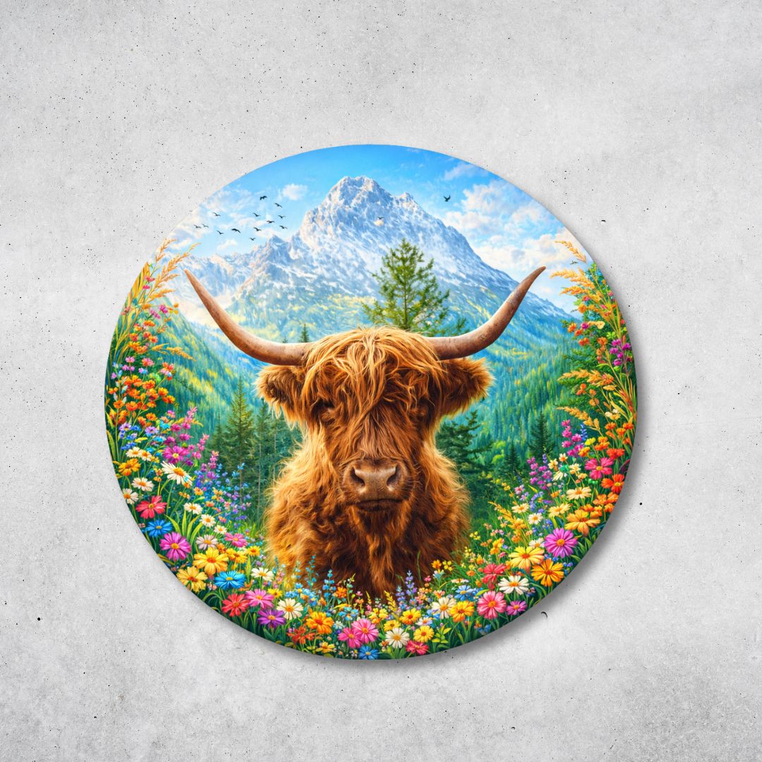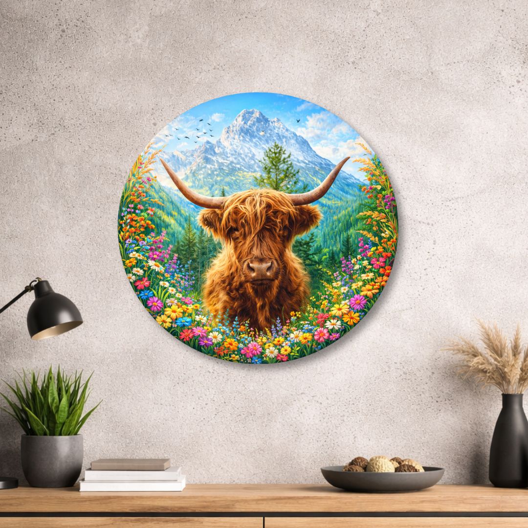 Dieses runde Metallschild mit ausdrucksstarkem Motiv ist ein echter Blickfang.